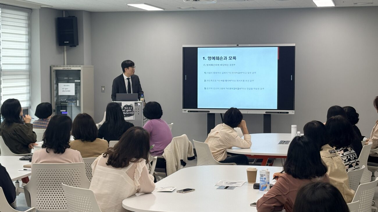 이번 연수는 일상생활 및 교육 현장에서 발생할 수 있는 다양한 법률문제를 사례 중심으로 이해하고, 실제 상황에서 활용할 수 있는 대응 방법을 알아보기 위해 마련됐다.