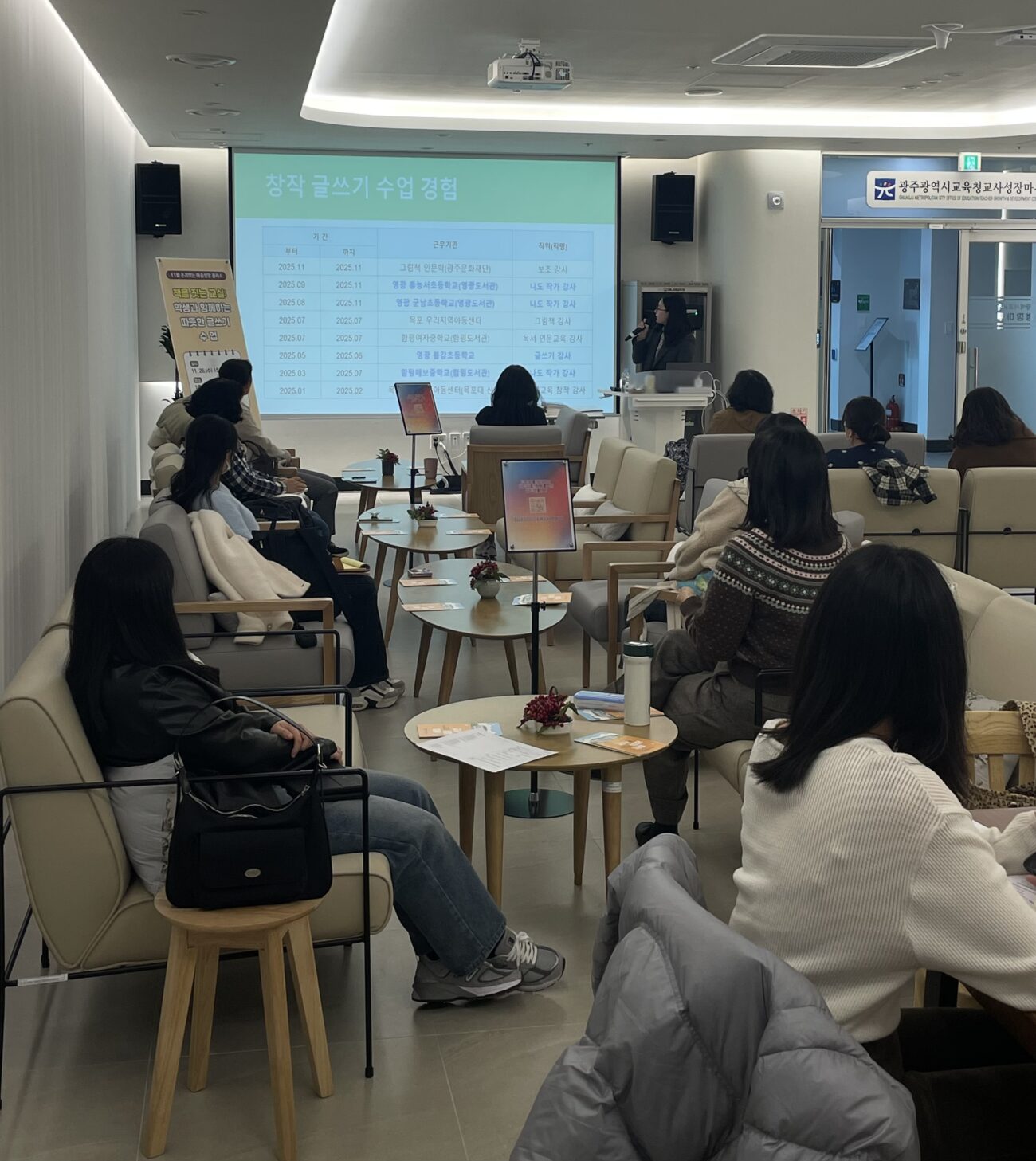 최 작가는 ▲학생의 흥미를 깨우는 장르 소설 문법과 캐릭터 설정 ▲문집 제작 및 또래 피드백 활용법 ▲시놉시스 작성 등 교실에서 즉시 적용 가능한 실전 글쓰기 지도법 등을 공유했다.