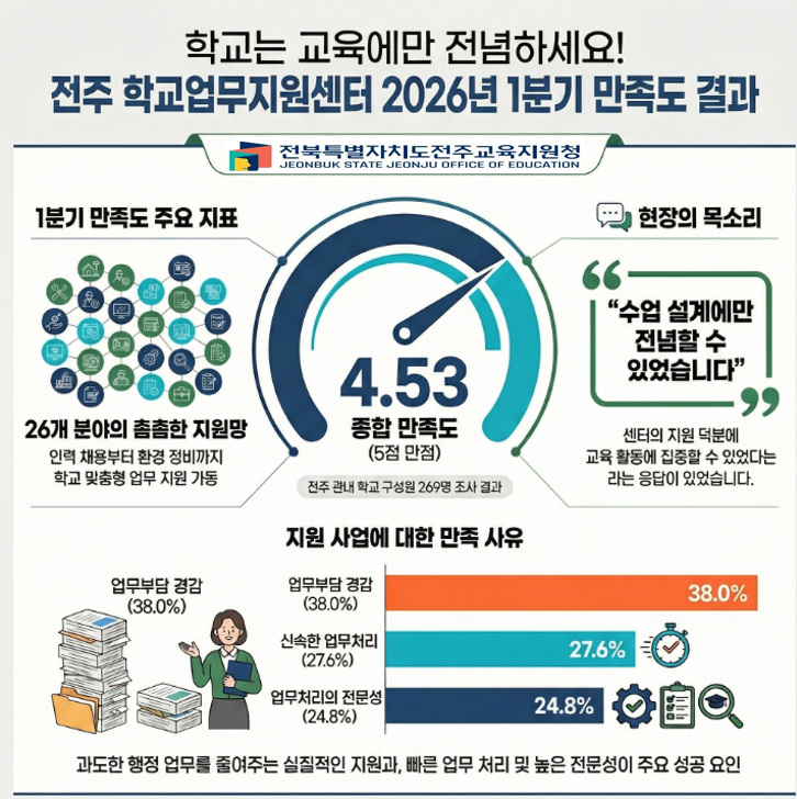 전주 학교업무지원센터 2026년 1분기 만족도 조사결과 4.53 기록