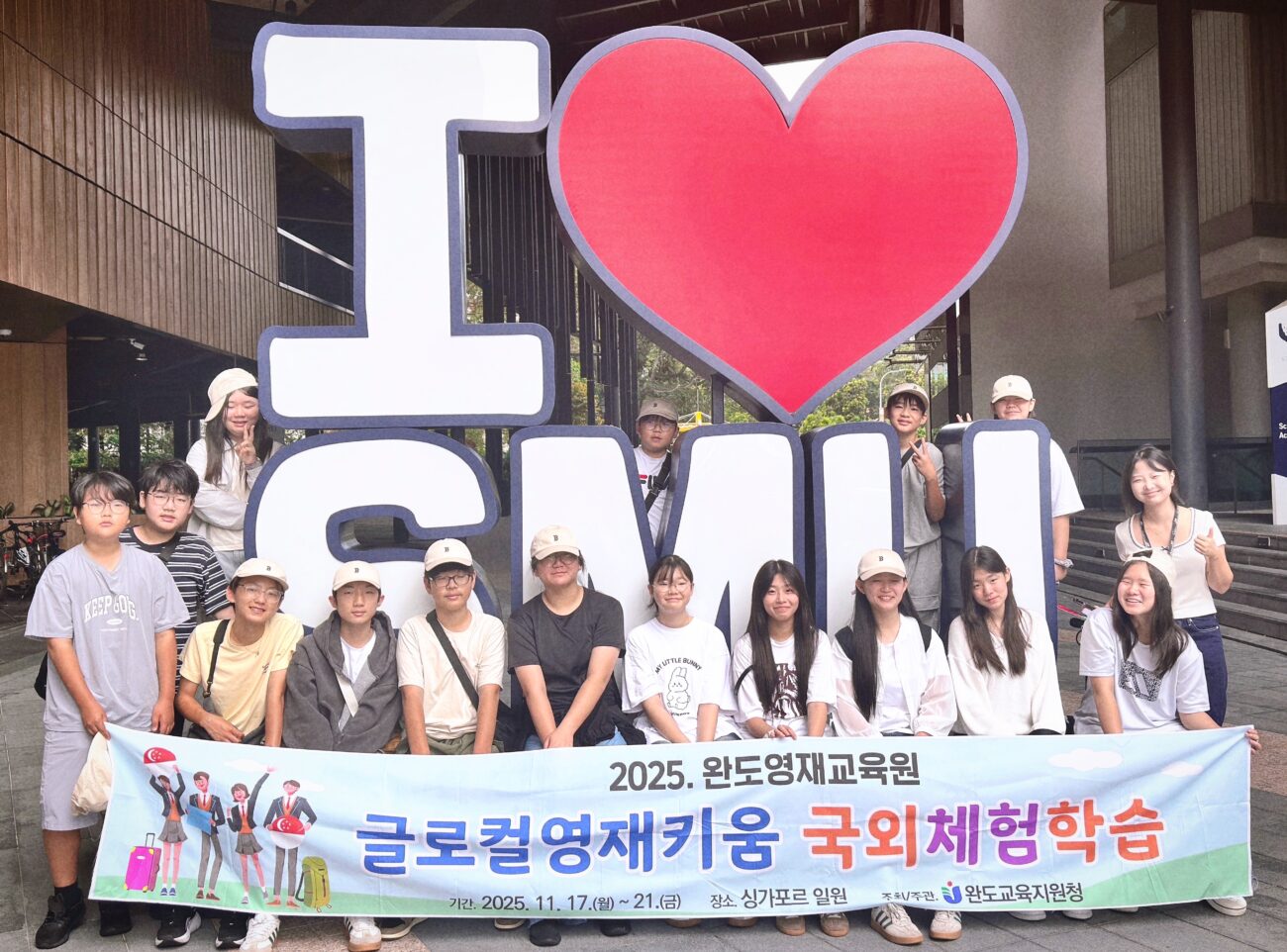 전라남도완도교육지원청(교육장 이철영)은 지난 11월 17일부터 21일까지 중등 영재 15명을 대상으로 싱가포르 일원에서 완도영재교육원 ‘글로컬 영재키움 국외체험학습’을 운영했다.