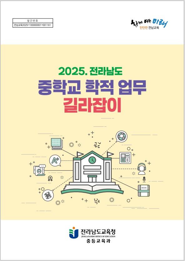 전라남도교육청(교육감 김대중)은 중학교 학적 업무의 체계적 운영과 교원의 실무 지원 강화를 위해 ‘2025 전라남도 중학교 학적 업무 길라잡이’를 발간해 보급했다고 밝혔다.