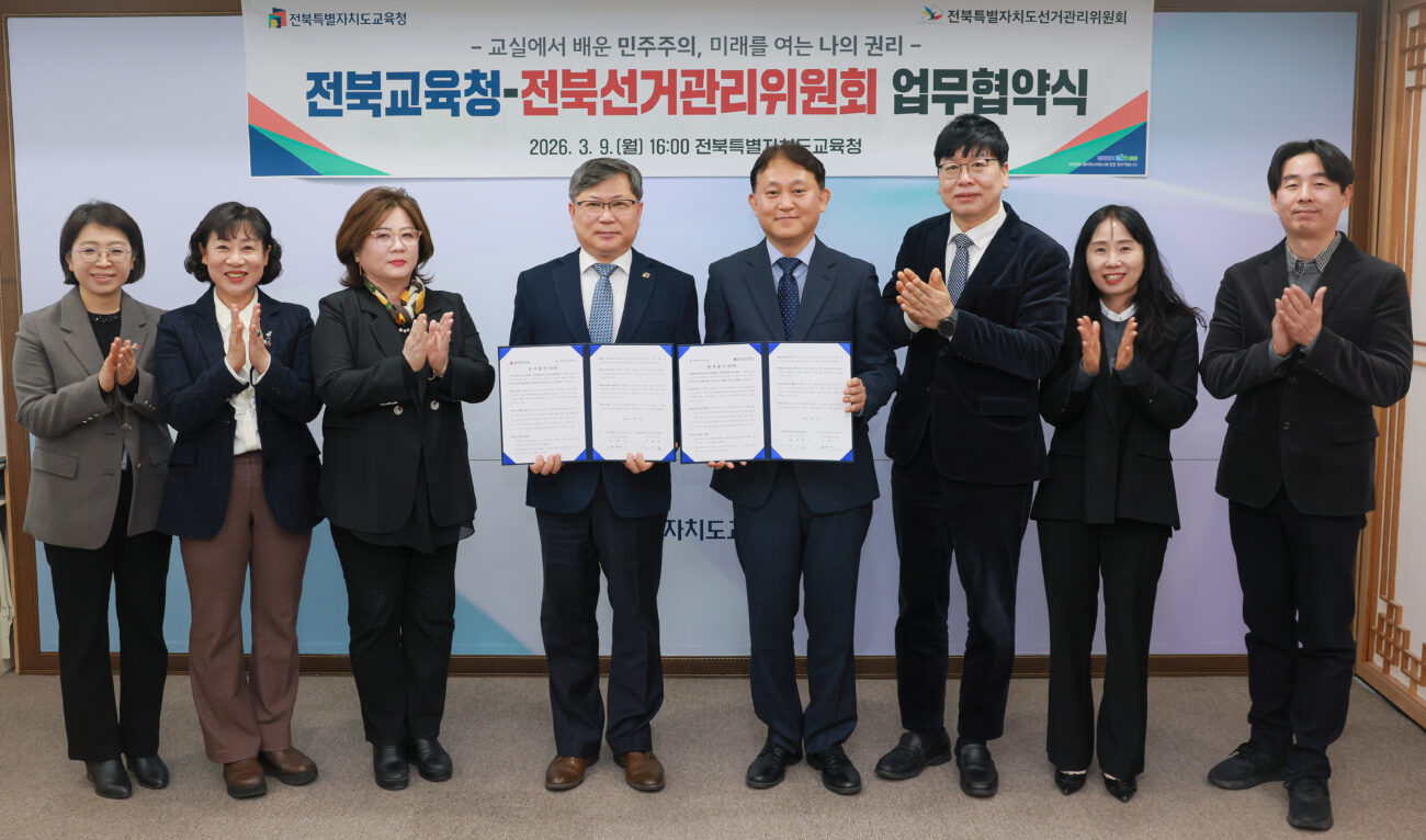 전북특별자치도교육청이 학생 선거교육 및 민주시민교육 활성화를 위해 전북특별자치도선거관리위원회와 협력 체계를 구축한다.