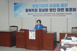 홍복학원 정상화 방안 마련 토론회 개최 광주광역시의회 교육문화위원회(위원장 명진)는 10월 27일(월) 오후 2시 시의회 교육문화위원회