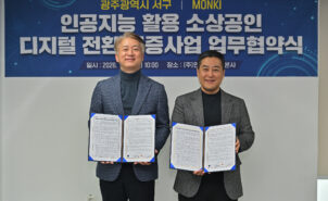 14일 AI전문기업 ㈜먼슬리키친 서울 본사에서 업무협약 소상공인 위한 AI 실증사업