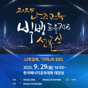 오는 29일 한국에너지공과대학서 나주교육 미래 10년 실행 계획 공유 전라남도나주교육지원청(교육장 변정빈)은 오는 9월 29일(월) 14시,