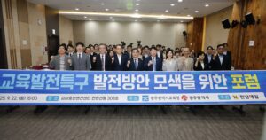포럼 개최…인재양성, 취·창업 정책 등 논의 광주시교육청(교육감 이정선)이 22일 광주광역시와 김대중컨벤션센터에서 ‘교육발전특구 발전방안 모색을 위한