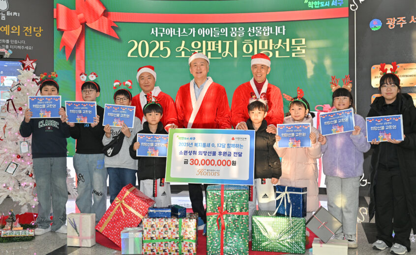 소원성취 희망선물 후원금 3000만원…손글씨 사연 받아 대상 선정 광주광역시 서구 고액 기부자 모임 ‘서구아너스’가 12월 산타가 되어 아이들에게 특별한 선물을 전한다. 서구는 3일 서구아너스로부터 지역 아동‧청소년을 위한 ‘소원성취 희망선물’ 후원금 3000만원을 전달받았다고 밝혔다. 서구는 2013년부터 매년 크리스마스를 앞두고 지역 아동 및 청소년들을 대상으로 수기 공모전을 열어 소원을 들어주는 ‘희망플러스 소원성취