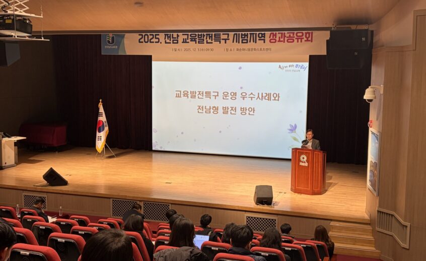 교육청‧지자체 성과공유회…“지역맞춤형 교육모델 확산 논의” 전라남도교육청(교육감 김대중)이 12월 3일 화순하니움문화스포츠센터에서 ‘2025. 교육발전특구 시범지역 교육청-지자체 합동 성과공유회’를 열어 교육발전특구 사업 추진 경과를 돌아보고, 2027년 교육발전특구 정식 지정을 위한 향후 과제를 논의했다. 전남은 지난 8월 고흥, 보성, 완도, 진도 4개 군이 교육발전특구 3차 시범지역으로 추가 지정되면서, 전국 최다인 21개 시군이 교육발전특구로 지정되는